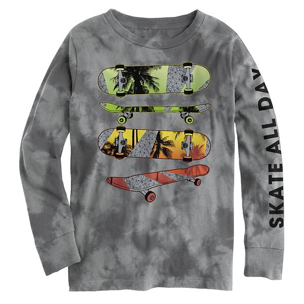 Boys 8 20 Skate All Day Skateboard Long Sleeve Graphic Tee